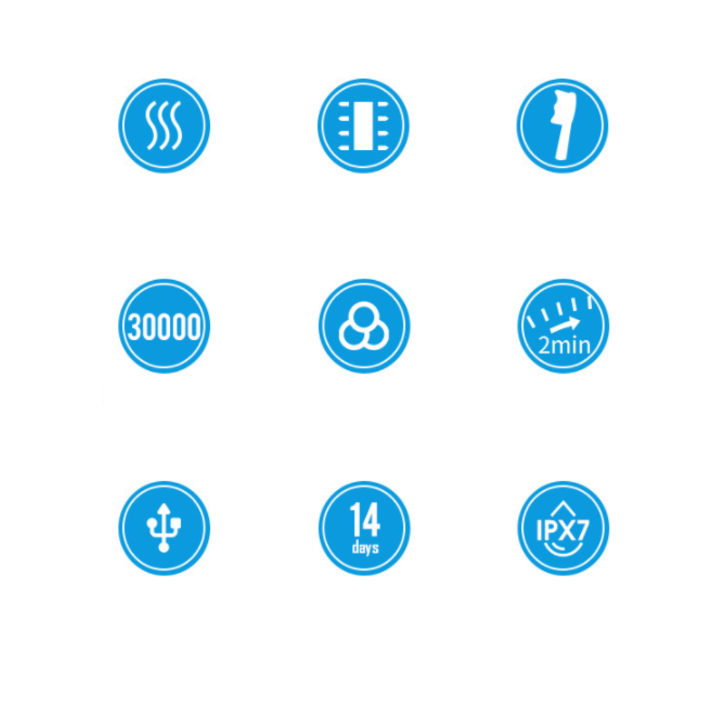 - Hẹn giờ tự động 2 phút. Hệ điều khiển thông minh rung báo hiệu sau mỗi 30 giây báo người dùng chuyển cung hàm đánh răng. Đảm bảo thời gian 2 phút đánh răng khoa học