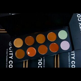 - Bảng màu Bảng kem nền - Che khuyết điểm - City Color 10 Color Foundation & Concealer Palette có 10 ô tròn với 10 tông màu khác biệt, giúp các nàng dễ dàng trong việc lựa chọn tông màu để thay đổi , sự lựa chọn hoàn hảo dành cho phái đẹp.