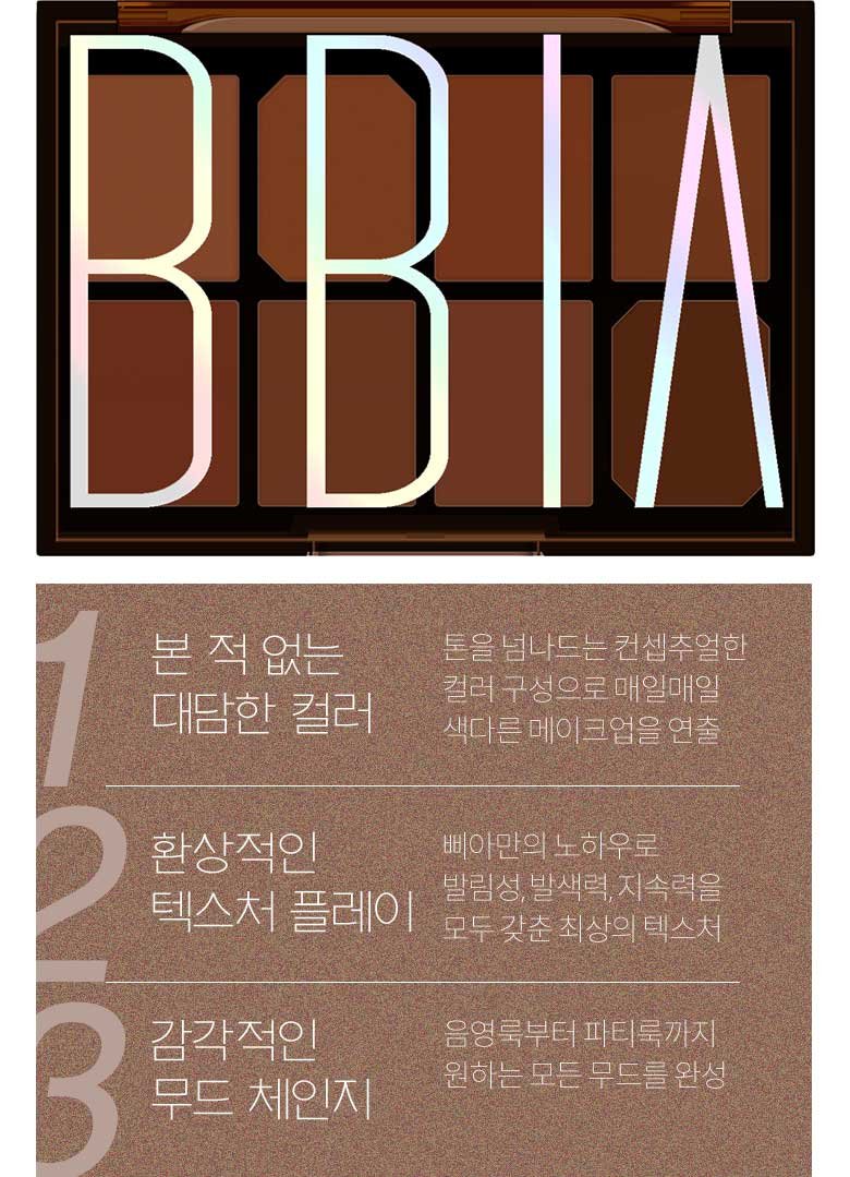Kết cấu hoàn hảo với độ bám, độ lên màu và thời gian lưu giữ trên da chính là bí quyết được tích lũy trong nhiều năm của thương hiệu Bbia. Bất cứ lúc nào, bất cứ nơi đâu, trong buổi gặp gỡ lịch sự, trang trọng hay những bữa tiệc lộng lẫy, bảng phấn măt này sẽ giúp cảm xúc của bạn luôn trọn vẹn.