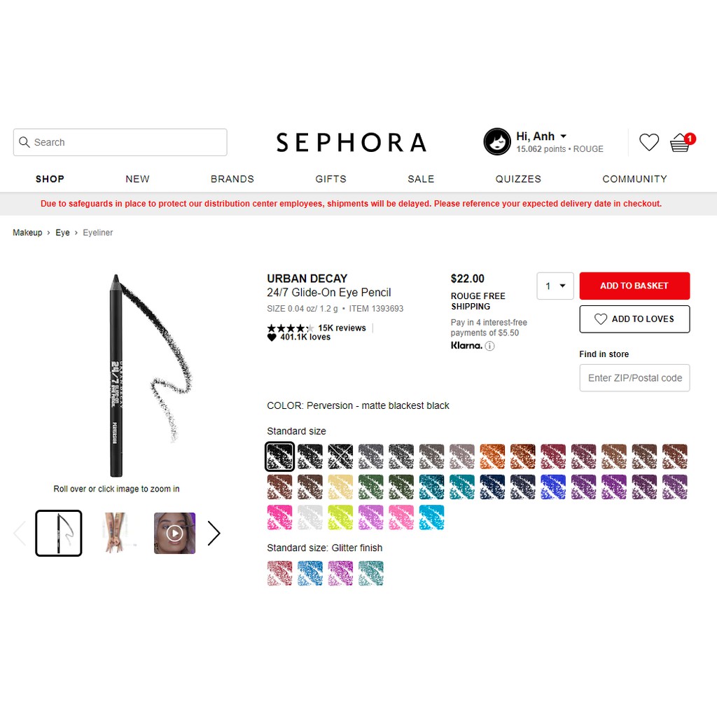 Giới thiệu [BILL] CHÌ KẺ MẮT URBAN DECAY GLIDE ON EYE PENCIL 24/7 MÀU PERVERSION