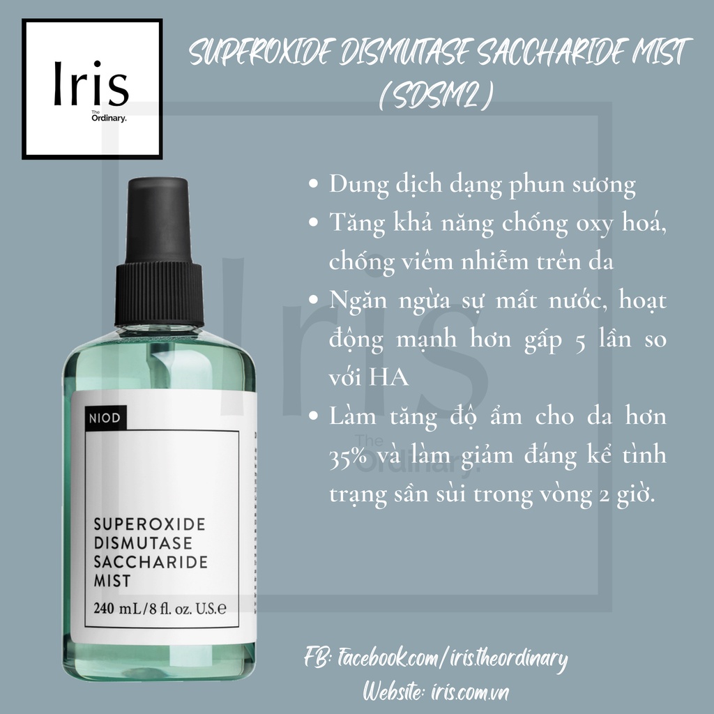 Giới thiệu (BILL HÃNG) Mist cấp ẩm, chống oxy hoá Superoxide Dismutase Saccharide Mist (SDSM2) - NIOD