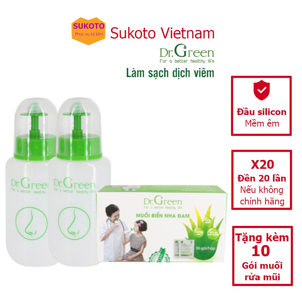Giới thiệu Bình Rửa Mũi Dr Green 240ml Tặng Kèm 10 Gói Muối Biển - Không Lo Viêm Mũi, Ho Khi Giao Mùa