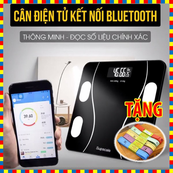 Cân sức khỏe điện tử thông minh, có bluetooth kết nối điện thoại kiểm tra chỉ số sức khỏe [Tặng thước đo]