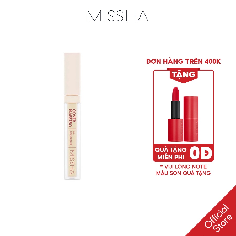 Che Khuyết Điểm Missha Cover Maestro Tip Concealer Khả năng che phủ hoàn hảo dành cho Da nhạy cảm hoặc Da đang bị mụn cần tìm che khuyết điểm lành tính.