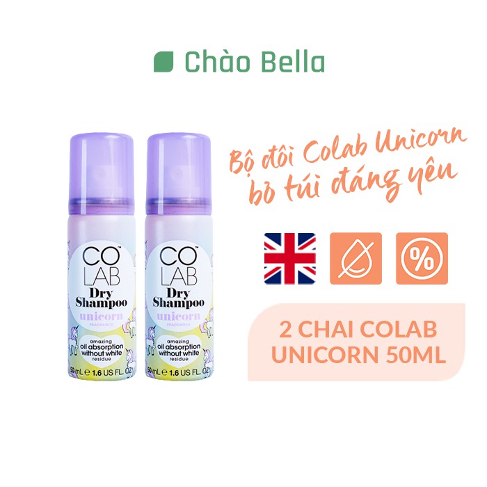 Combo 2 Dầu Gội Khô Colab Mini Hương Unicorn 50ml/chai Lành Tính Giúp Tóc Sạch Bồng Bềnh Và Vào Nếp Trong 5 Giây