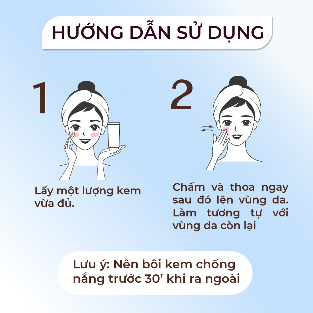 Lưu ý: Nên bôi kem trước 30 phút trước khi ra ngoài.