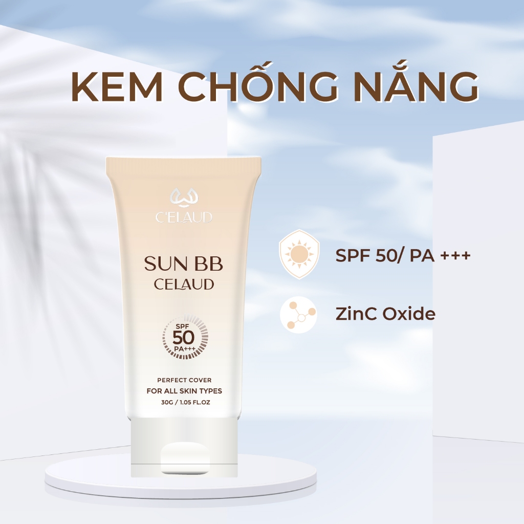 Kem chống nắng tối ưu cho da Sun BB Celaud- Công nghệ chống trôi "Water proof 4in1": Nâng tone, bảo vệ da, dưỡng ẩm, kiềm dầu - SPF 50+/PA+++ Chống nắng toàn diện, bảo vệ da trước tác động ...