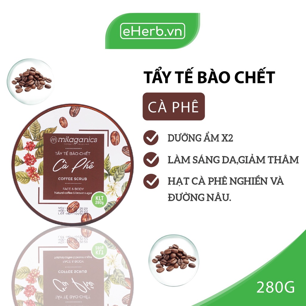 Giới thiệu Combo 2 Tẩy Tế Bào Chết Body Cà Phê 280gr MILAGANICS Cho Mọi Loại Da Giúp Dưỡng Trắng Da Toàn Thân, Giảm Mụn Mờ Thâm