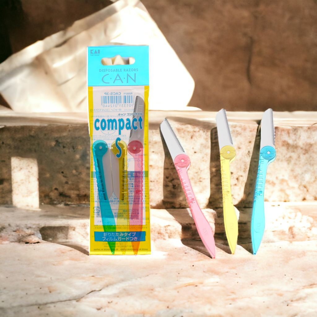 Dao Cạo Lông Mày Cán Gập Kai Can Compact 01244Q Dành Cho Nữ (Set 3 cây)