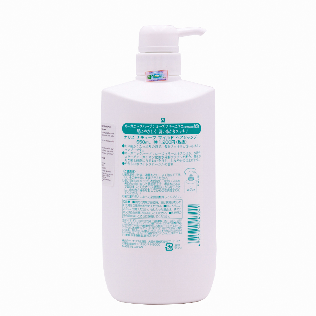 Dầu Gội Thảo Dược Nhật Bản Cao Cấp Cải Thiện Tình Trạng Tóc Khô, Chẻ Ngọn Naris Natuve Mild Hair Shampoo (650ml) - Hàng Chính Hãng