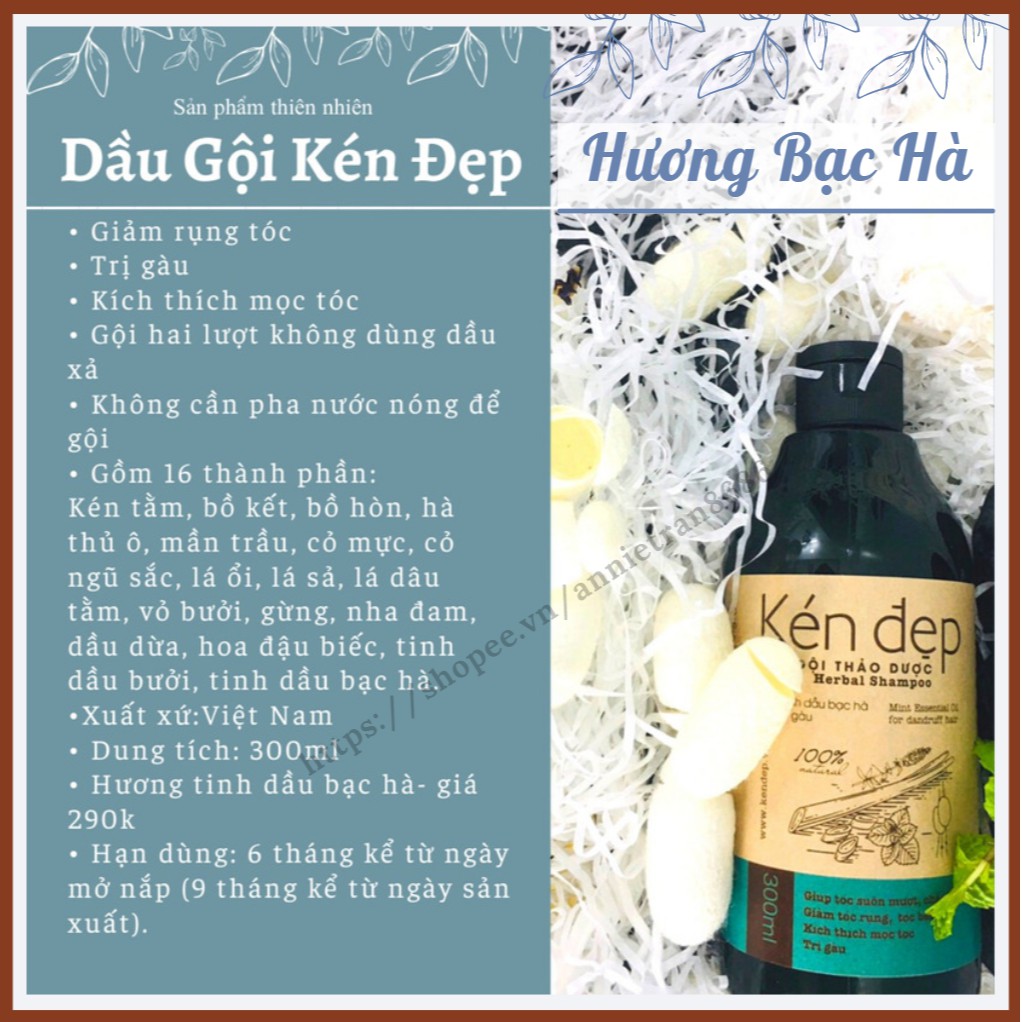 Lưu ý: với các bạn chuyển sang dùng dầu gội thiên nhiên từ các loại dầu gội cn thì da đầu cần thời gian để thích ứng (khoảng 1 tháng). Vì đa phần các dầu gội cn hiện nay chứa silicon và các chất tẩy rửa khá mạnh,...vì thế khi chuyển sang Kén Đẹp mn kiên nhẫn dùng nhé vì hàng tự nhiên thì hiệu quả lâu dài chứ không ngay lập tức được nhé mặc dù đã có khách của Kén bị gàu cực nặng chỉ có thể dùng 1 loại chuyên dụng cho gàu nhưng chuyển sang dùng Kén thì không bị gàu. Tuy nhiên cũng tùy tình trạng mỗi người mà thời gian hiệu quả sẽ khác nhau.