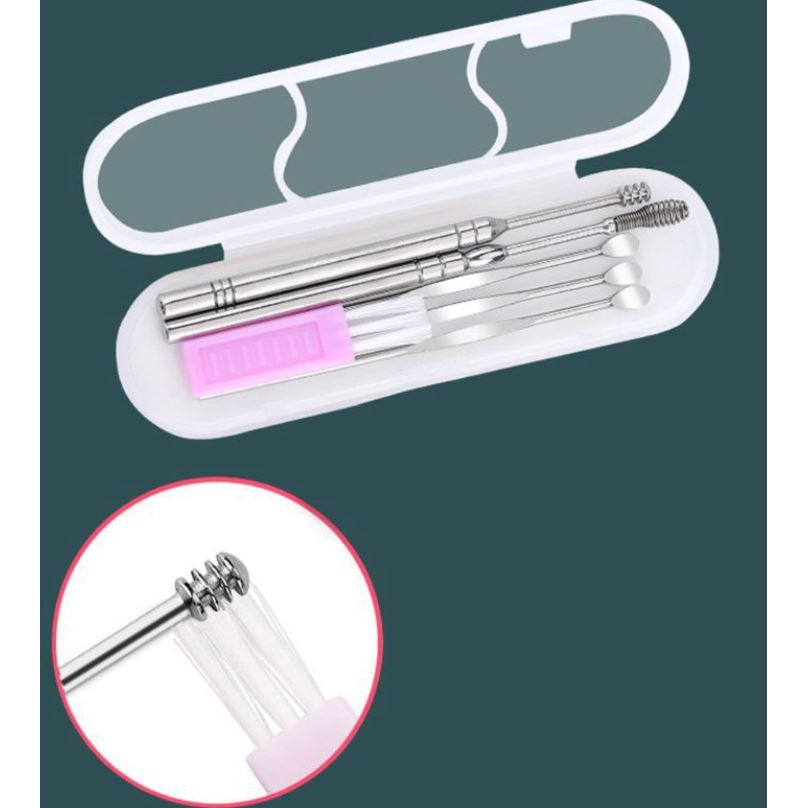 Bộ sản phẩm: Dụng cụ vệ sinh tai ngoáy tai đồ lấy ráy tai Cao Cấp bao gồm 6 sản phẩm: