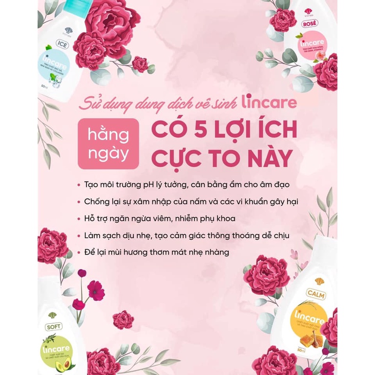 ✔ Dung dịch vệ sinh phụ nữ vệ sinh cốc nguyệt san Lincare Rose 50ml giúp thơm dịu, ngừ khuẩn, cân bằng PH