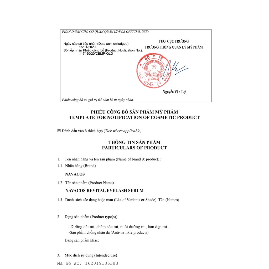 Dưỡng Mi Navacos Revital Eyelash Serum 10g, giúp dưỡng ẩm cho mi mắt luôn khỏe mạnh - Mi Cong Quyến Rũ, Dưỡng Mi 3in1, Dưỡng dài mi, Chống rụng mi, Phục hồi và nuôi dưỡng mi