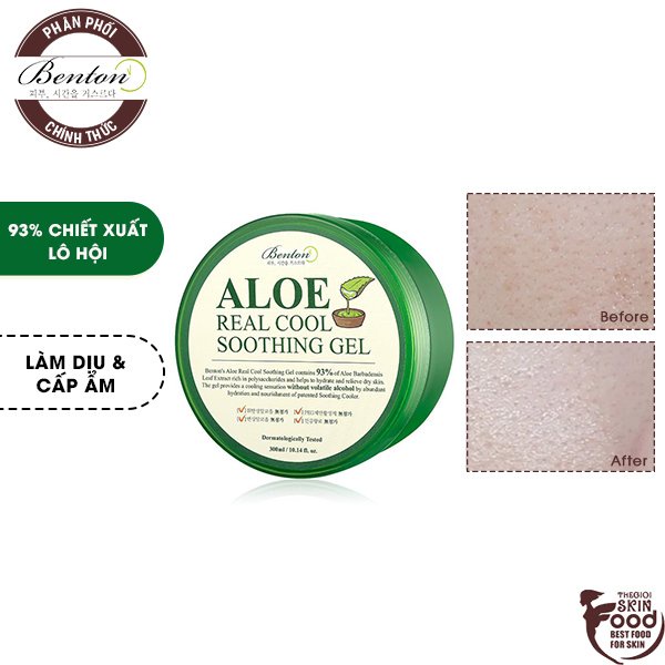 - Gel dưỡng da đa năng Benton chứa đến 93% chiết xuất lô hội giúp cấp ẩm và ngăn ngừa tình trạng mất nước của da, từ đo giúp giữ cho da luôn mềm mại. Đặc biệt giàu Polysaccharides với khả năng nổi bật như chống viêm, tái tạo và chữa lành vết thương vì vậy sản phẩm rất hiệu quả trong việc làm dịu da sau khi tiếp xúc nhiều với ánh nắng mặt trời.