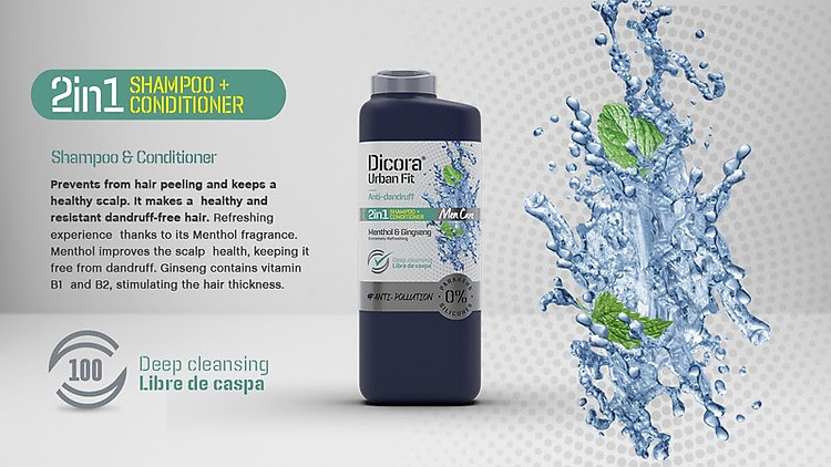 Dầu gội-xả 2in1 chống gàu dành cho nam giới Dicora Urban Fit 400ml, Được đặc chế cho nam giới, Dầu gội xả 2in1 Dicora Urban Fit chống gàu với tinh chất bạc hà và nhân sâm giúp làm sạch tất cả bụi bẩn, chất nhờn và gàu trên tóc và da đầu của bạn, đồng thời mang đến cho bạn cảm giác mát lạnh sảng khoái và hương thơm quyến rũ kéo dài trên tóc và da đầu.