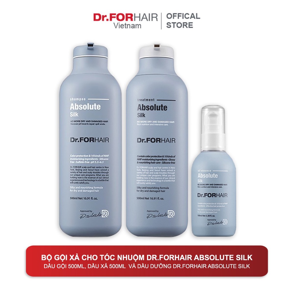 Giới thiệu Bộ dầu gội đầu dưỡng tóc và dầu xả cho tóc nhuộm, giúp tóc mượt mà, óng ả, phục hồi hư tổn Dr.ForHair Absolute Silk