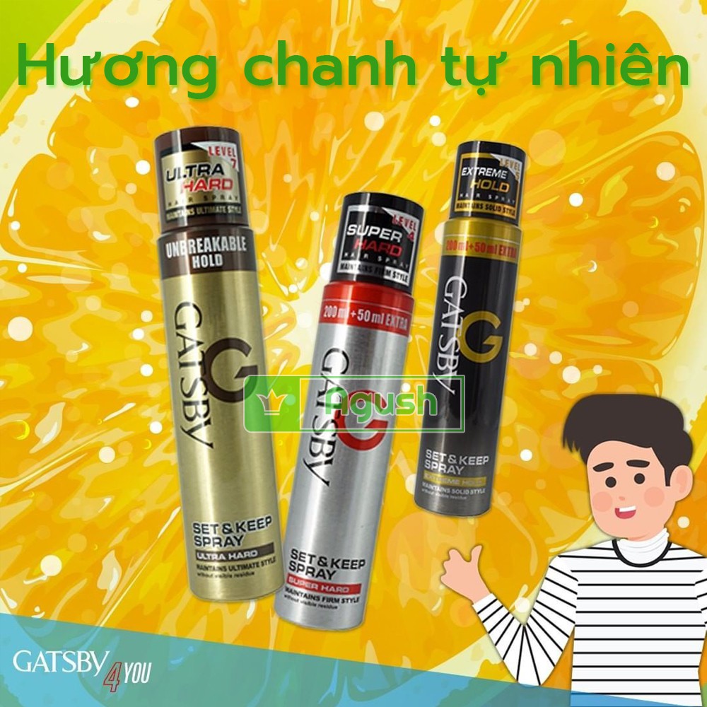 Giới thiệu Gôm xịt tóc nam nữ tạo kiểu tóc hair spray Gatsby Set Keep Spray Extreme Hold lọ 250ml mini 66ml chính hãng giữ nếp thơm