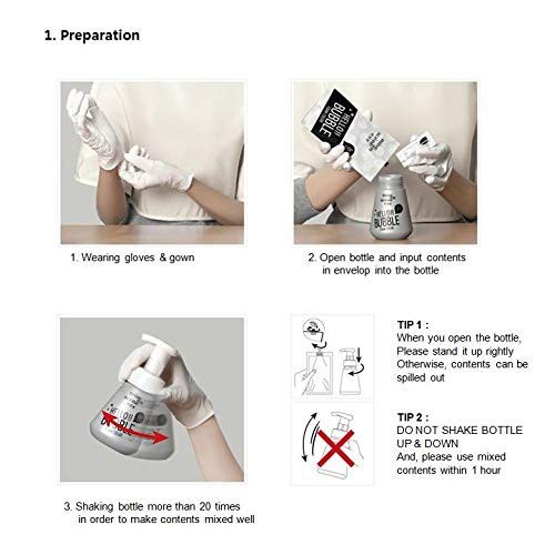 Bước 1: Pha Dung dịch tạo màu ( Solution 1) và Tinh Chất nhuộm ( Solution 3) vào chai chứa Dung dịch tạo bọt ( Solution 2).