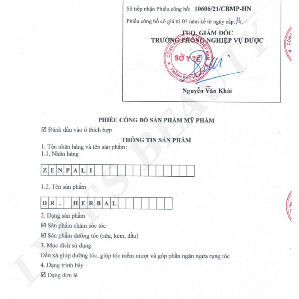– Dầu gội kích thích mọc tóc Dr Shampoo Zenpali được phân phối độc quyền tại Công Ty TNHH Thương mại Và Dịch Vụ Zenpali " An Toàn Tuyệt Đối "