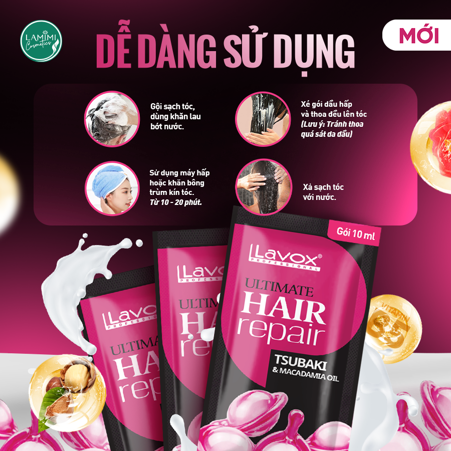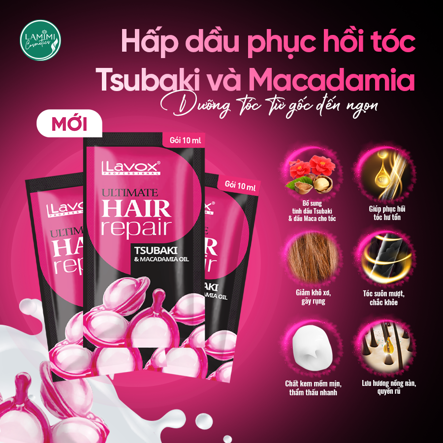 Giới thiệu Hấp Dầu Phục Hồi Tóc tinh dầu Hoa Trà Đỏ & Macadamia Oil Lavox