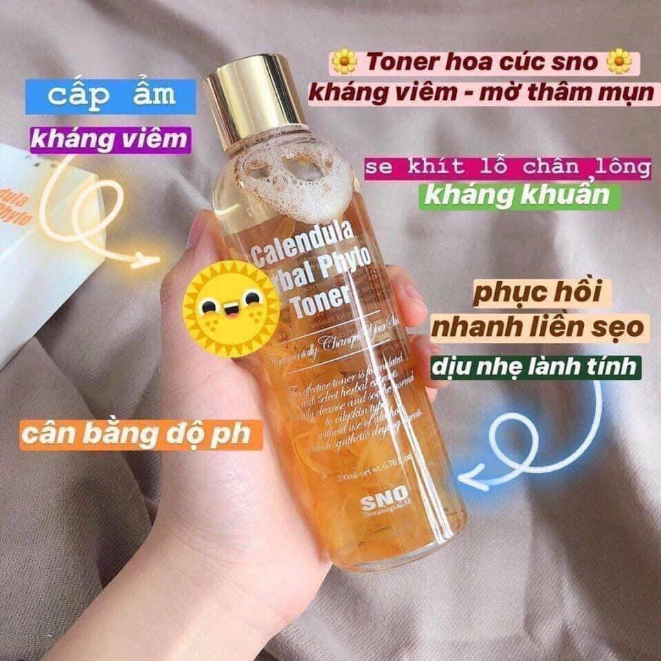 💕Toner Chứa Cánh Hoa Tươi SNO Calendula Herbal Phyto Toner VỚI 96% CHIẾT XUẤT THIÊN NHIÊN giúp nuôi dưỡng, làm sạch, cân bằng và ngăn ngừa các vấn đề da hiệu quả đem đến làn da sáng mịn, tươi trẻ. Độ pH =6, đây là độ pH hoàn hảo, giúp làm sạch, mềm mịn da, tái tạo lại lớp màng sau khi rửa mặt cũng như trung hoà độ acid trên da, giúp các bước sau của skincare được hấp thụ tốt hơn/ Ai bảo toner không quan trọng, chứ em này chính là bước dẫn đường cho các treatment phía sau đó ạ 😘