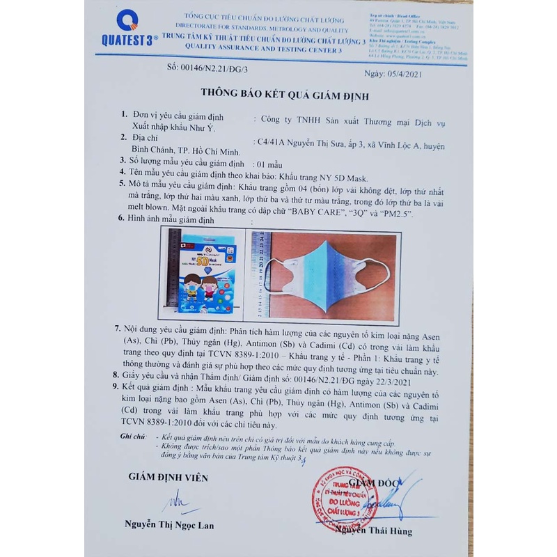 Giới thiệu HỘP 10 CÁI KHẨU TRANG 5D CHO TRẺ EM TỪ 1 TUỔI ĐẾN 6 TUỔI NY 5D Mask In hình Ngăn Bụi Kháng khuẩn Bảo vệ sức khỏe Như Ý