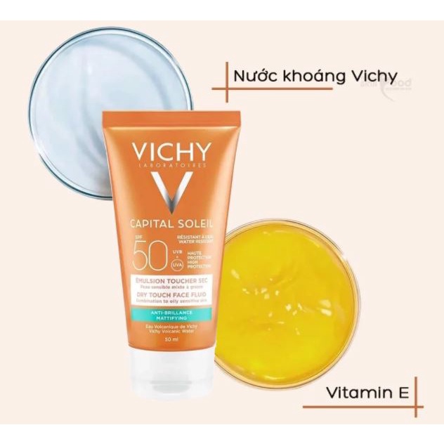 Giới thiệu Kem Chống Nắng Cho Da Dầu, Không Nhờn Rít Vichy Ideal Soleil Mattifying Face Fluid Dry Touch SPF50+ 50ml