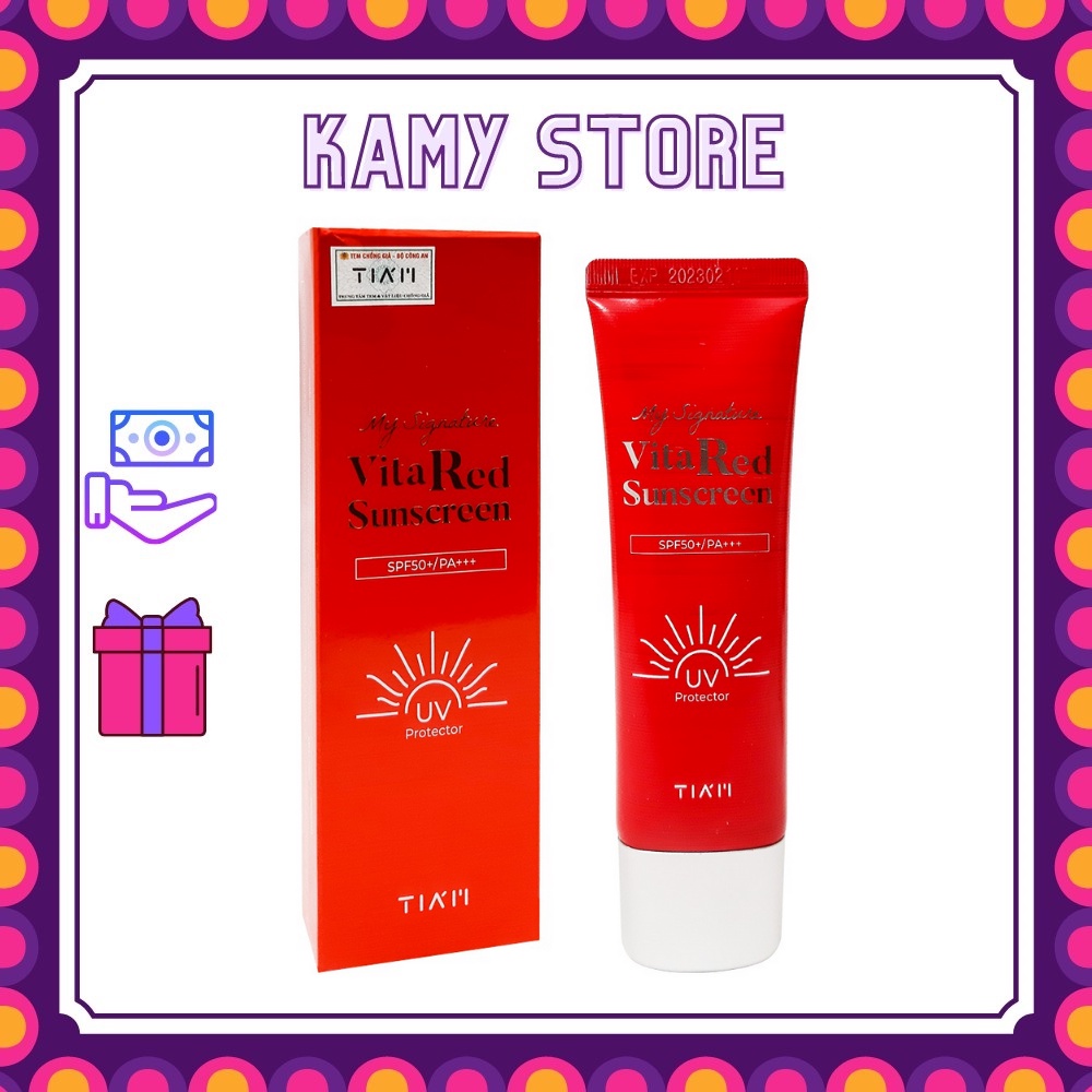 Tiam My Signature Vita Red Sunscreen hiện là một trong những loại kem đa năng đang được rất nhiều chị em ưa thích. Sản phẩm vừa có khả năng chống nắng ưu việt với chỉ số chống nắng SPF50+, PA++++ vừa làm sáng da, che phủ khuyết điểm, cấp ẩm, chống lão hóa, mang đến cho bạn làn da mịn màng, trẻ trung.