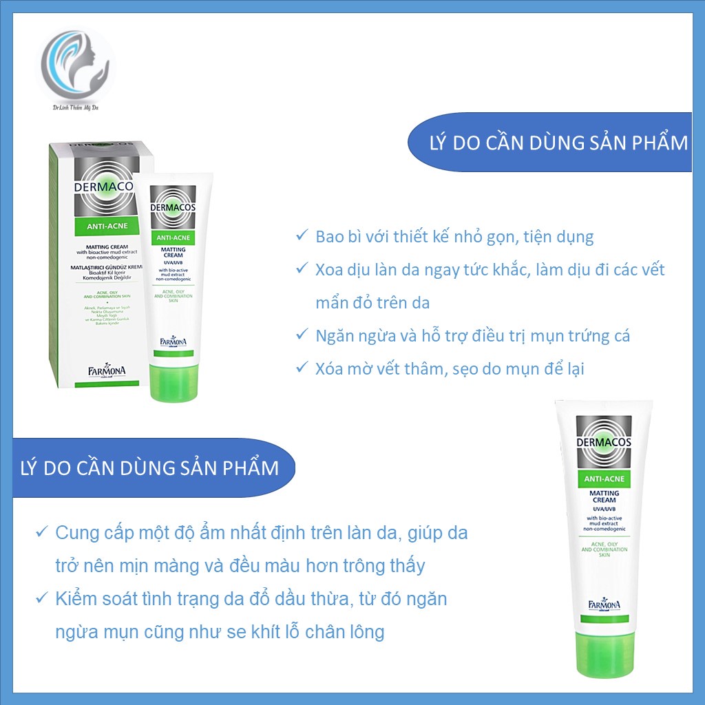 Giới thiệu Kem dưỡng ẩm cho da dầu mụn Dermacos Anti Acne giảm bóng nhờn và ngừa mụn DA01