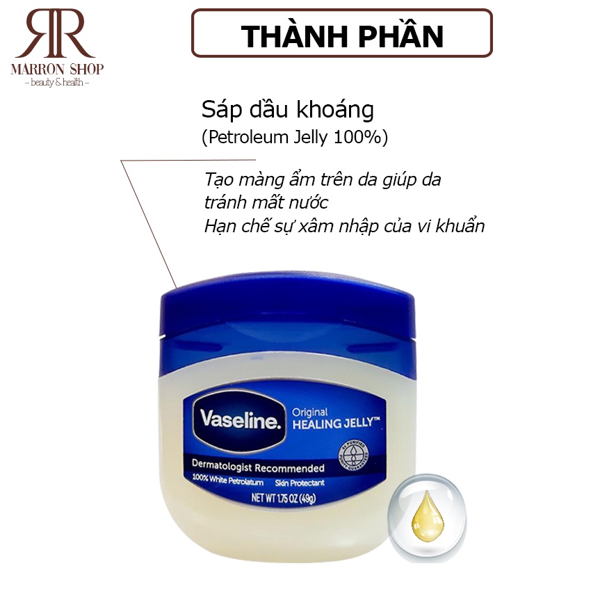 Kem dưỡng ẩm Vaseline Original Healing Jelly được làm từ 100% dầu khoáng tự nhiên tinh khiết, cô đặc lại dưới dạng sáp đặc. Vaseline giúp chống bong tróc, nẻ da, giúp da tránh mất nước và mềm mại mịn màng hơn.