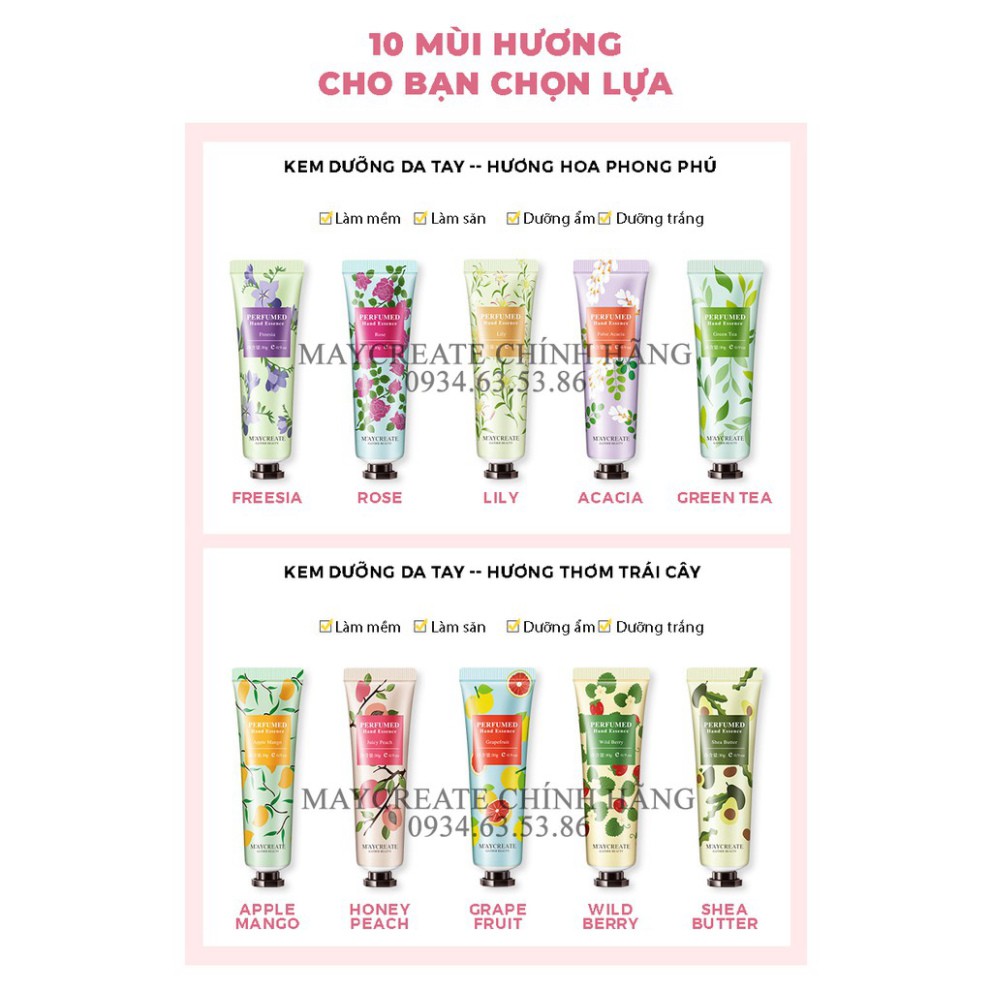 MAYCREATE là mỹ phẩm nội địa trung quốc, các sản phẩm của công ty Maycreate đều chiết xuất hoàn toàn tự nhiên an toàn tuyệt đối với mọi loại da tay.