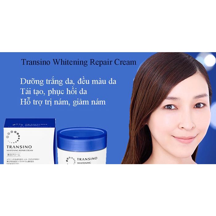 - Kem dưỡng trắng da, làm giảm thâm nám Transino cung cấp cho da các dưỡng chất cần thiết để hồi phục và nuôi dưỡng hoàn hảo các tế bào da đặc biệt là các tế bào đã bị lão hóa.