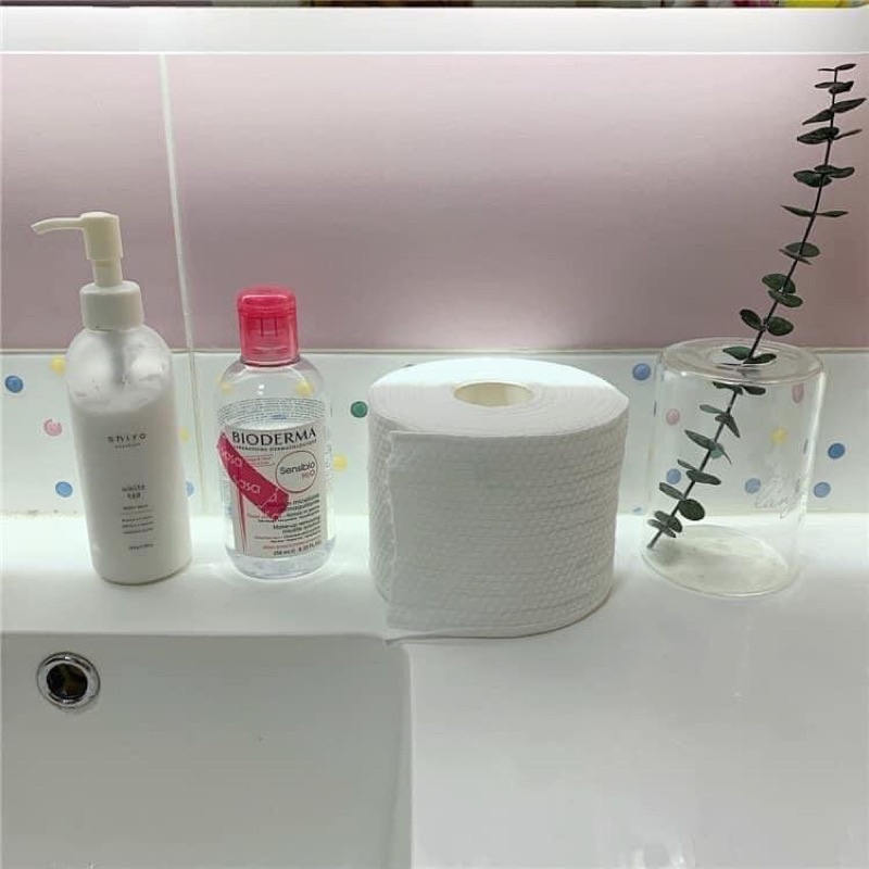 ⚡Một cuộn gồm 80 miếng đơn( khổ 200mm*190mm) có thể dùng khô or ướt, dùng để tẩy trang và lau khô sau khi rửa mặt rất tiện