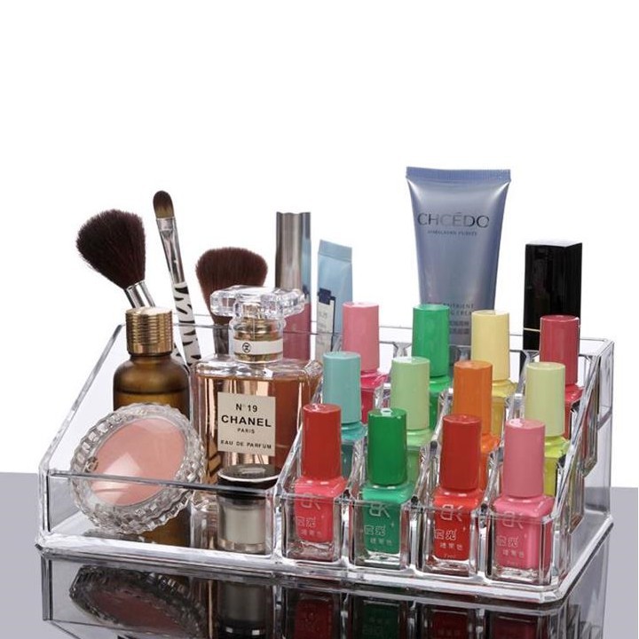 Khay đựng mỹ phẩm 16 ngăn tiện ích được làm bằng mica đúc nguyên khối cao cấp, trong suốt với thiết kế nhiều ngăn chứa sẽ giúp bạn bảo quản các các loại dụng cụ làm đẹp, mỹ phẩm hoặc các món đồ trang sức luôn được gọn gàng.
