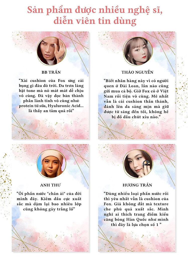 | Các dòng của Fox đều sử dụng công nghệ tiên tiến cùng thành phần thiên nhiên để tạo ra sản phẩm không chỉ giúp bảo vệ, chăm sóc cho làn da của bạn, mà còn góp phần không nhỏ trong việc đơn giản hóa quy trình trang điểm, giúp tiết kiệm thời gian, mang lại vẻ ngoài trẻ trung cho bạn. |