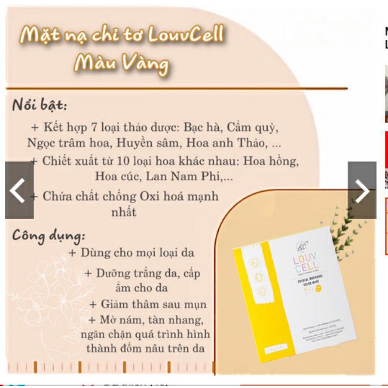 Giới thiệu Mặt nạ vi sợi thiên nhiên chăm sóc da Louvcell Crystal Color Mask 25g