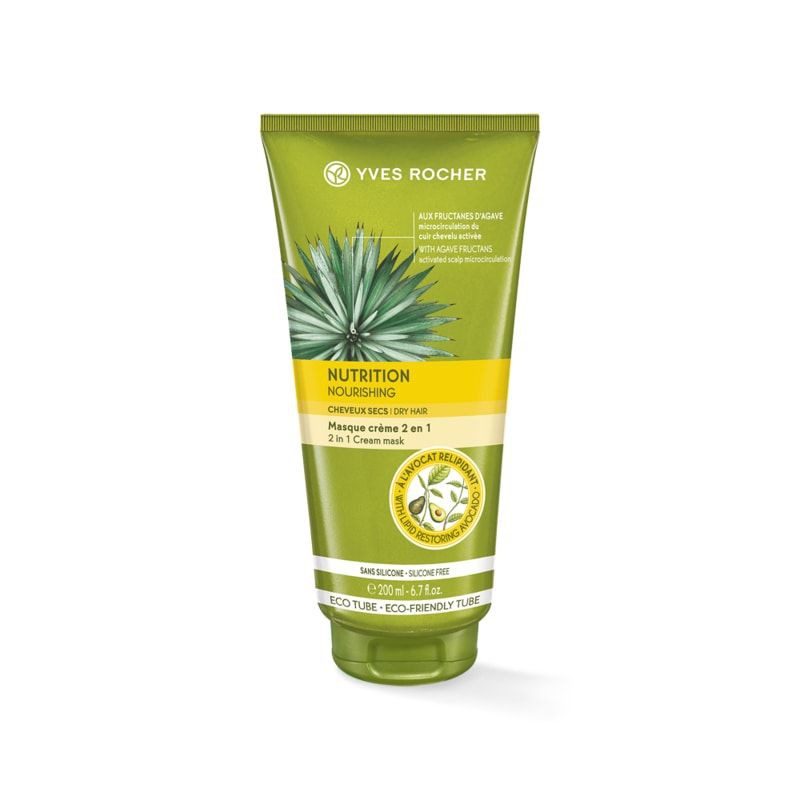🥑 Mặt Nạ Nuôi Dưỡng Tóc Yves Rocher Nourishing 2 In 1 Cream Mask với công thức hơn 95% thành phần có nguồn gốc từ thiên nhiên chiết xuất từ nước cây thùa (Agave Fructans) và dầu quả bơ giàu các axít béo thiết yếu mang đến các chất dinh dưỡng quan trọng cho mái tóc.