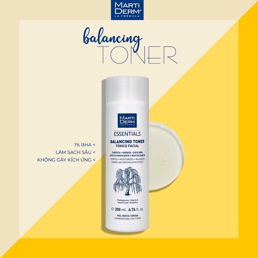 Giới thiệu MartiDerm - Nước Cân Bằng Làm Sạch Chứa BHA & Prebiotics - MartiDerm Essentials Balancing Toner (200ml)