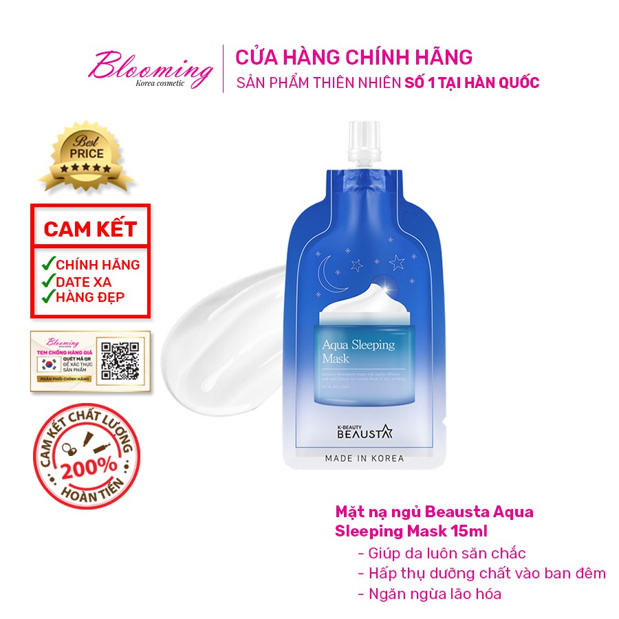 Beausta Aqua Sleeping Mask mặt nạ ngủ dạng nước với với thành phần tự nhiên giúp chống lão hóa, làm trẻ hóa làn da, đồng thời bổ sung độ ẩm cải thiện sắc da, xua tan mệt mỏi cẳng thẳng sau ngày dài tiếp xúc với nắng gió, khói bụi và môi trường máy lanh tại nơi làm việc; cho da tươi mới chỉ sau một đêm và mang lại giấc ngủ sâu, ngon và dễ chịu.