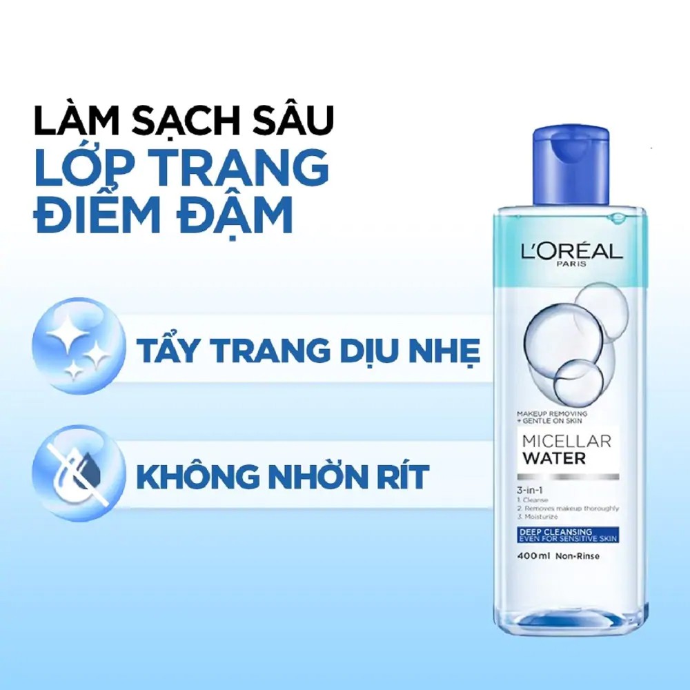 Giới thiệu NƯỚC TẨY TRANG L'OREAL MICELLAR WATER 400Ml