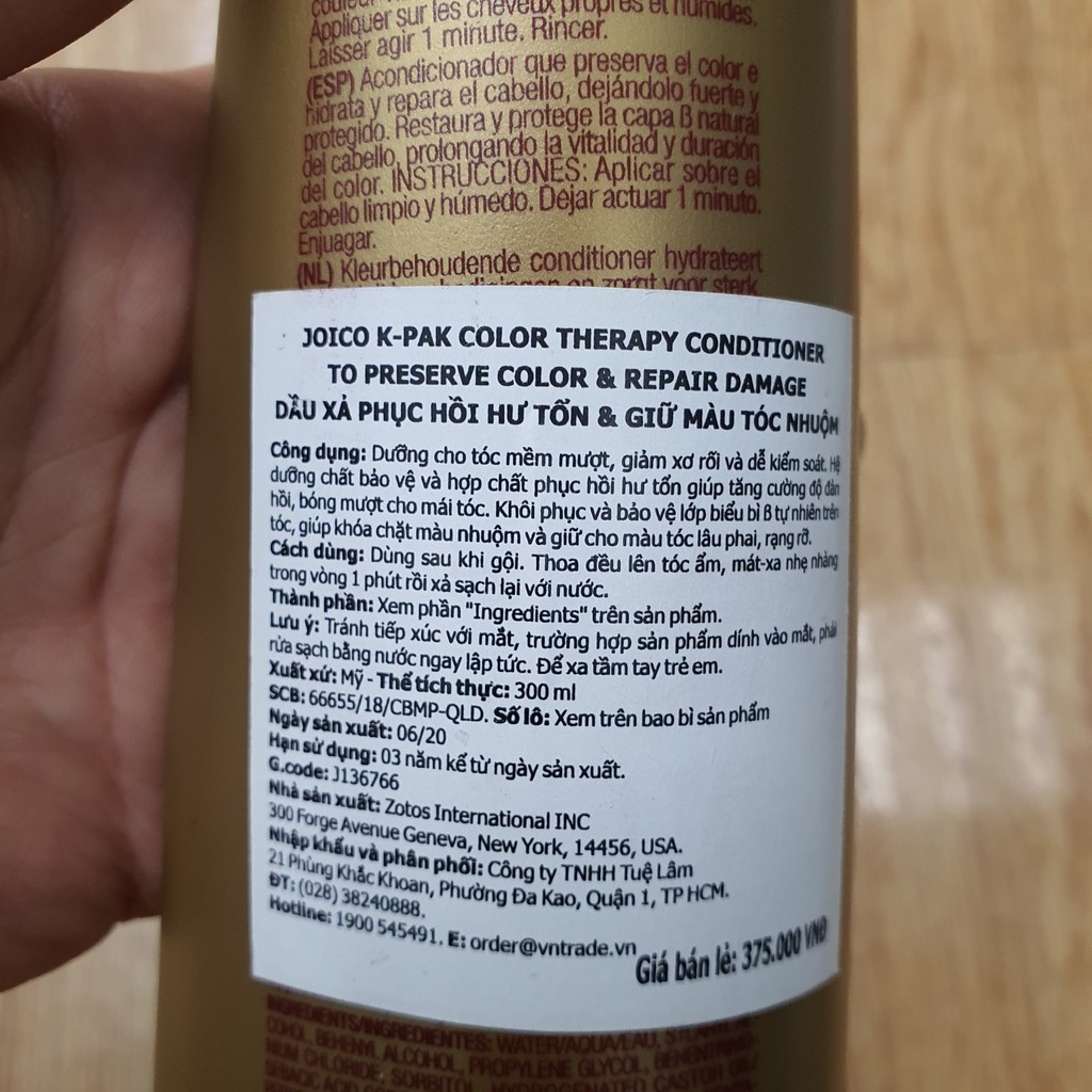 Giới thiệu Sale lỗ dầu xả Joico Kpak bảo vệ màu nhuộm và dầu gội tạo phồng 300ml