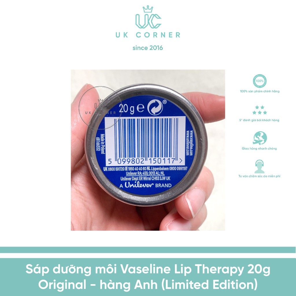 Giới thiệu Sáp dưỡng môi Vaseline Lip Therapy 20g hàng Anh (UK)