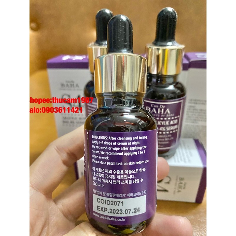 Giới thiệu serum Cos De BAHA Salicylic Acid BHA 4% ngừa mụn ẩn, mụn trứng cá, thu nhỏ lỗ chân lông 30ml.