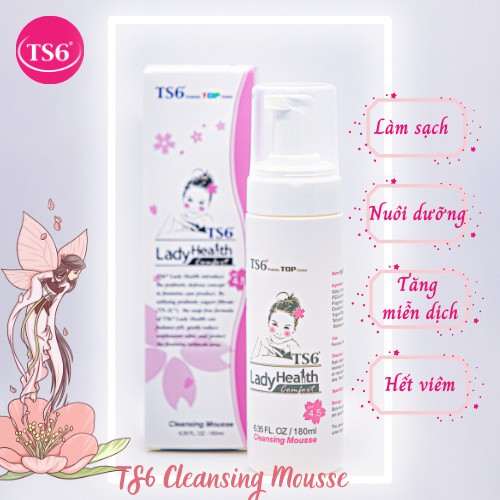 1. Dung dịch vệ sinh cao cấp TS6: dùng để vệ sinh vùng kín hằng ngày, giúp làm sạch, giảm mùi hôi hiệu quả, giảm ngứa, hỗ trợ điều trị và ngăn ngừa viêm nhiễm phụ khoa, dưỡng da vùng kín luôn mềm mại & khô thoáng. Cân bằng pH, lợi khuẩn probiotic duy trì môi trường axit, giúp vùng tam giác luôn khoẻ mạnh.