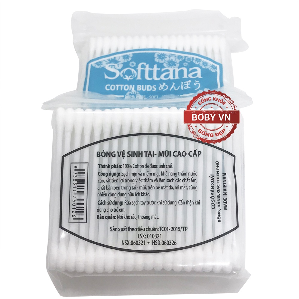 Softtana tăm bông vệ sinh tai mũi cao cấp (100 que)