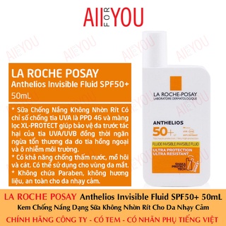 [TEM CTY] Kem chống nắng La Roche Posay Anthelios Invisible Fluid SPF 50+ 50ml dạng sữa lỏng nhẹ không nhờn rít