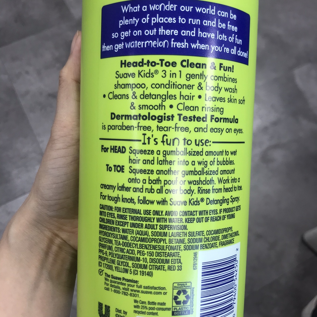 🔹Sữa tắm gội cho bé SUAVE Kid 3 trong 1 Watermelon Wonder (dưa hấu) 1.18l