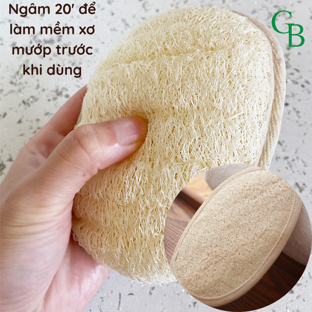 - Cách dùng: Bông tắm mới mua về, ngâm trong nước tầm 20 phút để phần xơ mướp được mềm ra, hạn chế gây ra cảm giác đau rát khi sử dụng.