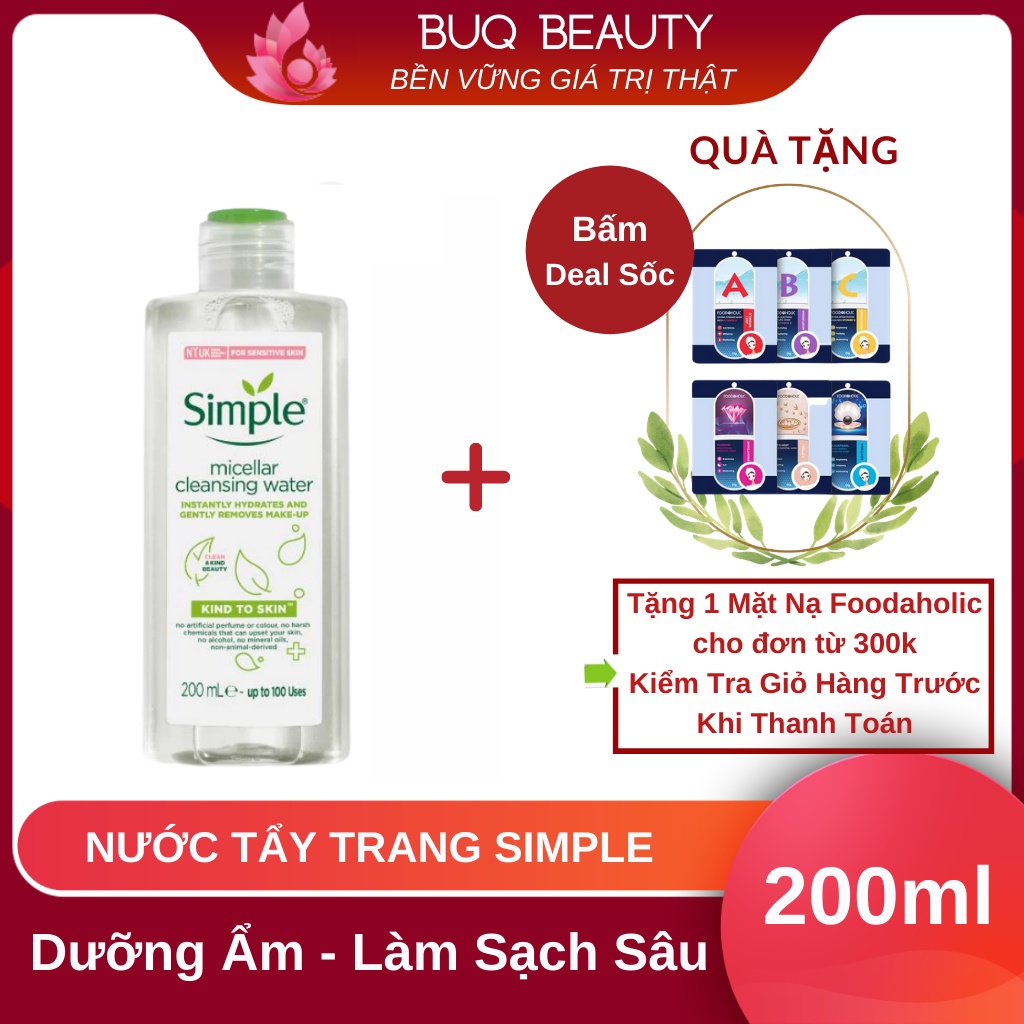 Nước tẩy trang Simple kind to skin micellar cleansing water 200Ml cho da dầu nhạy cảm chính hãng